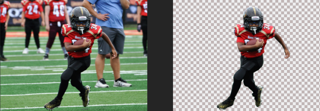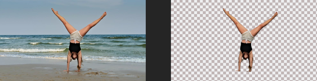 Removal of image background leaving the foreground image to be viewed solely or inserted on another background.